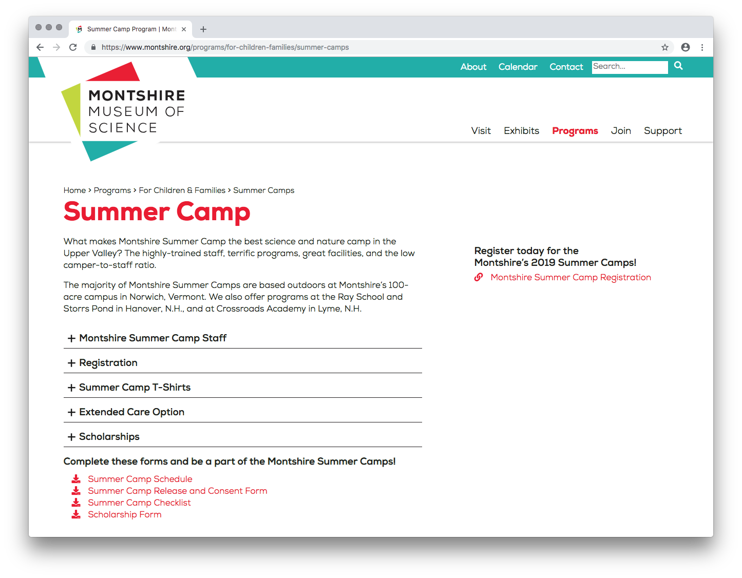In 2018, the Montshire decided it was time for a design refresh. We were happy to have been selected as the vendor to do this and the resulting site is some of our best work. Staff at the Montshire did a remarkable job with planning and wire framing the layout making our job infinitely easier to complete.